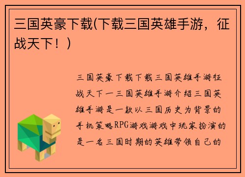 三国英豪下载(下载三国英雄手游,征战天下!)